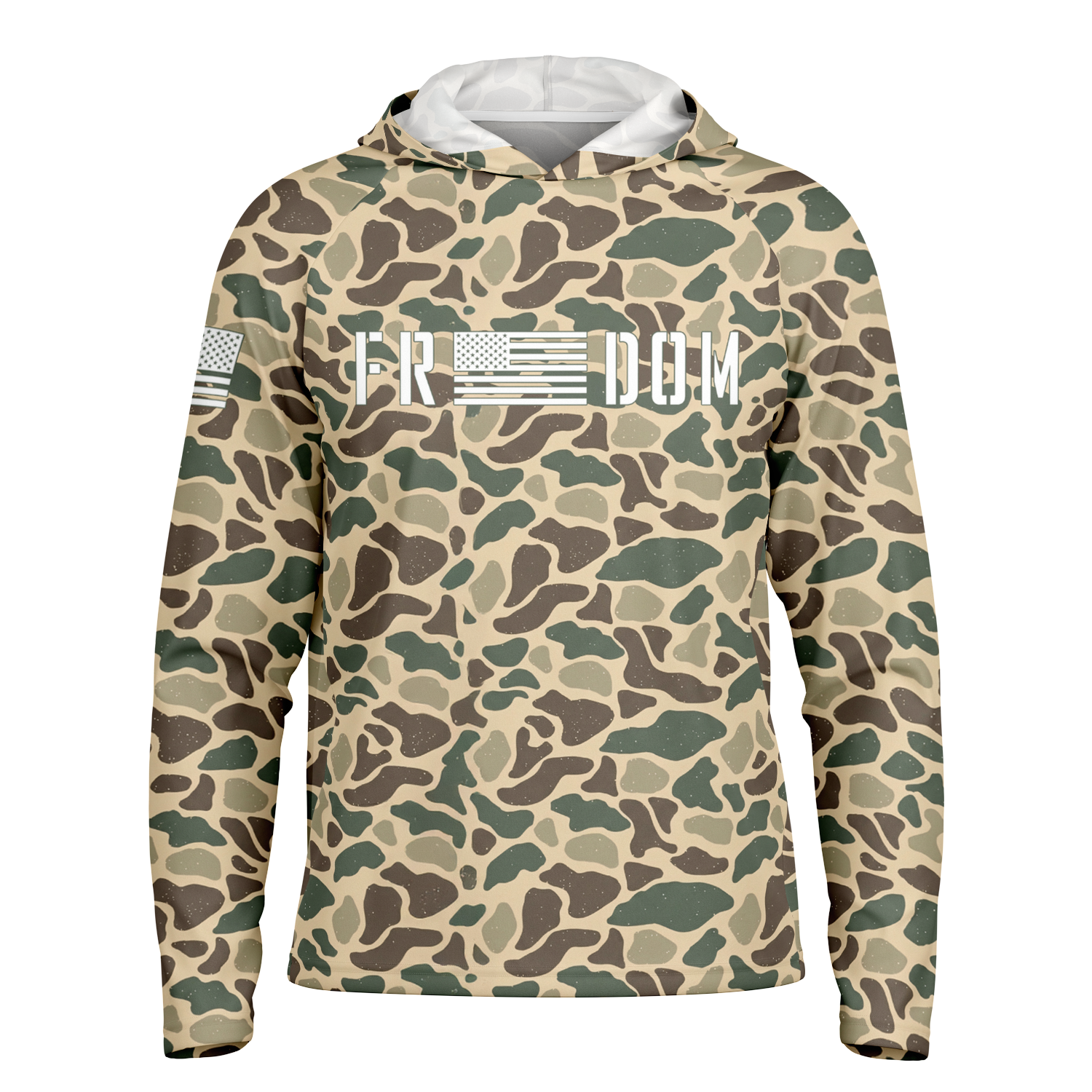 FREEDOM printed boldly across the chest. Featuring our signature cameo pattern throughout the garment. One word. Everything you are.