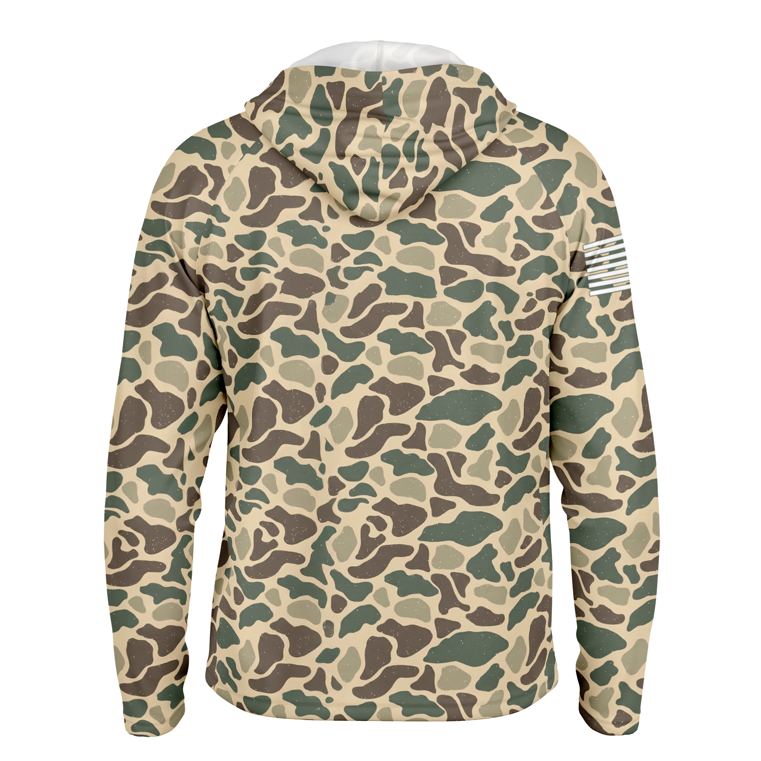 100% recycled polyester UPF 50+ — blocks 98% of UV on long days on the water or in the stand.